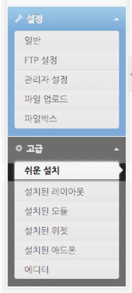 Xpress Engine의 Admin 페이지에서 좌측에 나열된 메뉴 중 고급 > 쉬운 설치 메뉴를 클릭해주세요.